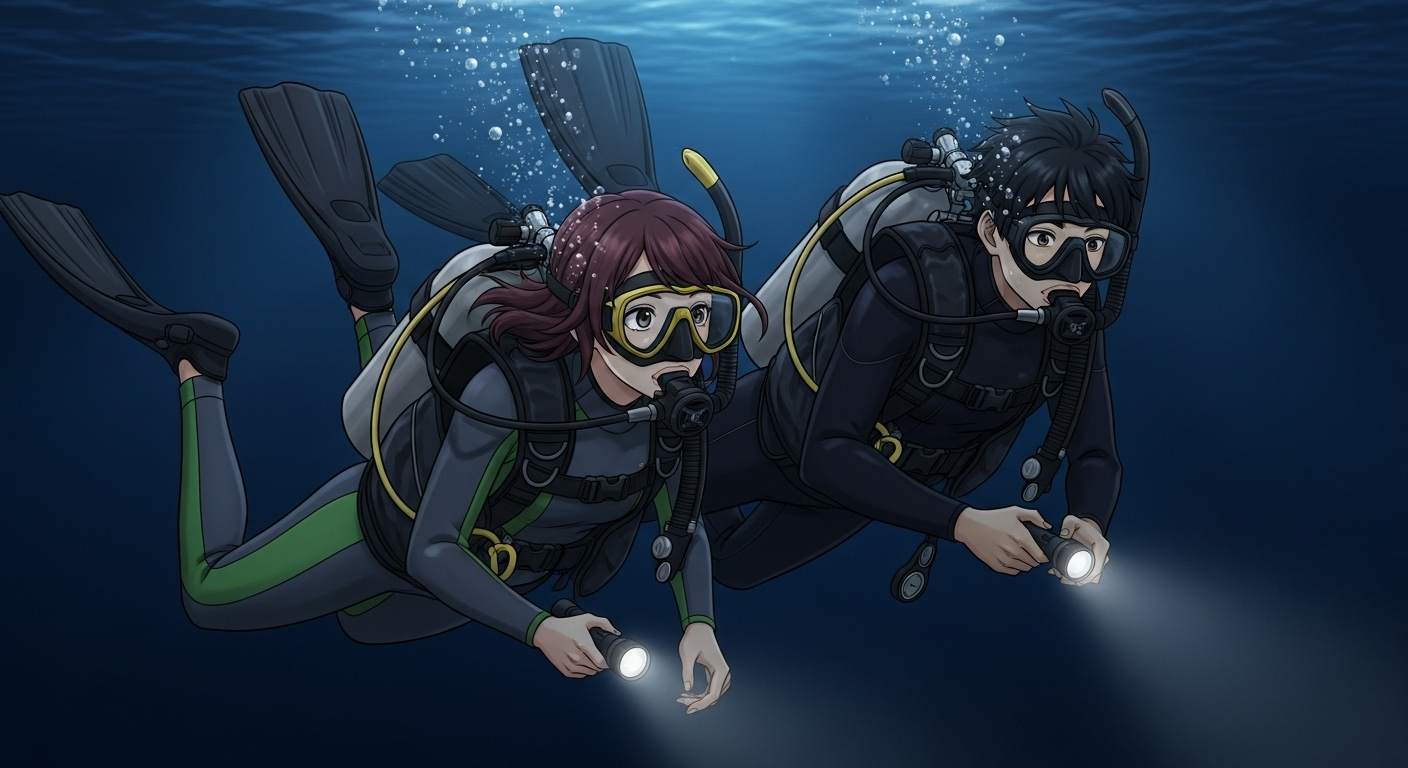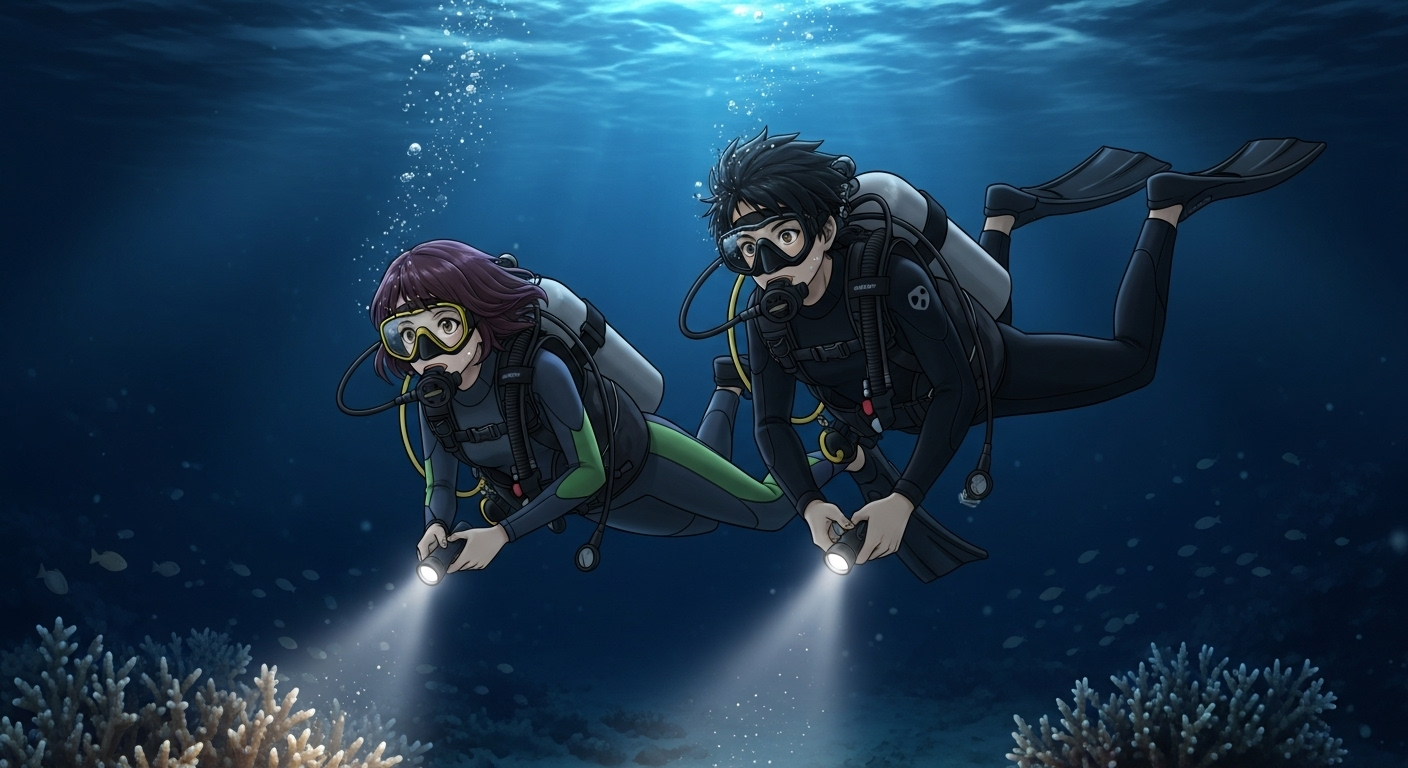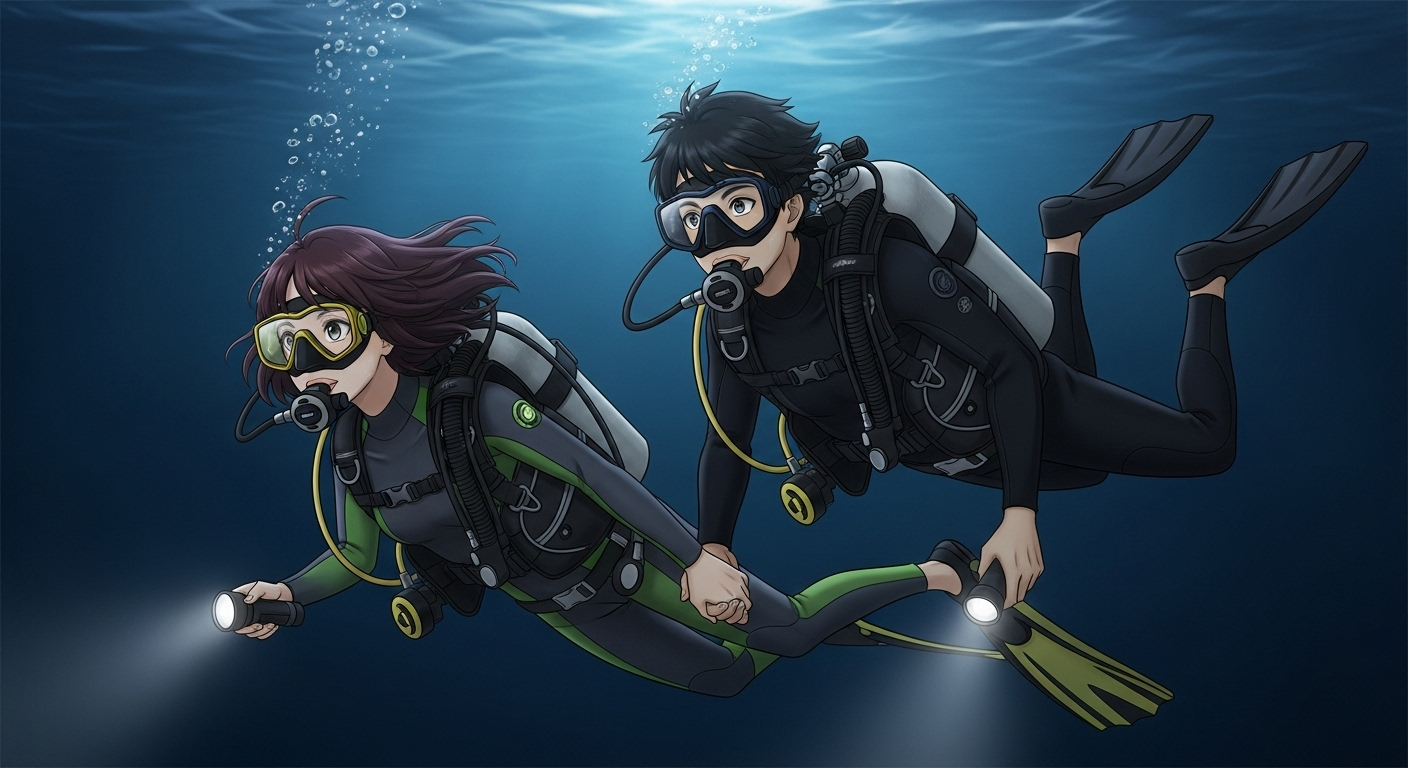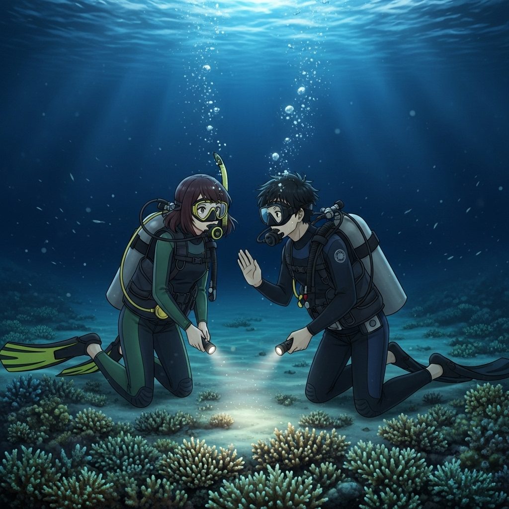 Dive #26: 恋人の日の続きのお話になります。今回ダイブマスターちゃんは、将来を約束し合ったインストラクターの彼氏くんと、二人っきりでサンゴの産卵のプライベートアタックのようです。でもインストラクターくんはダイブマスターちゃんに別の用事もあるようです。