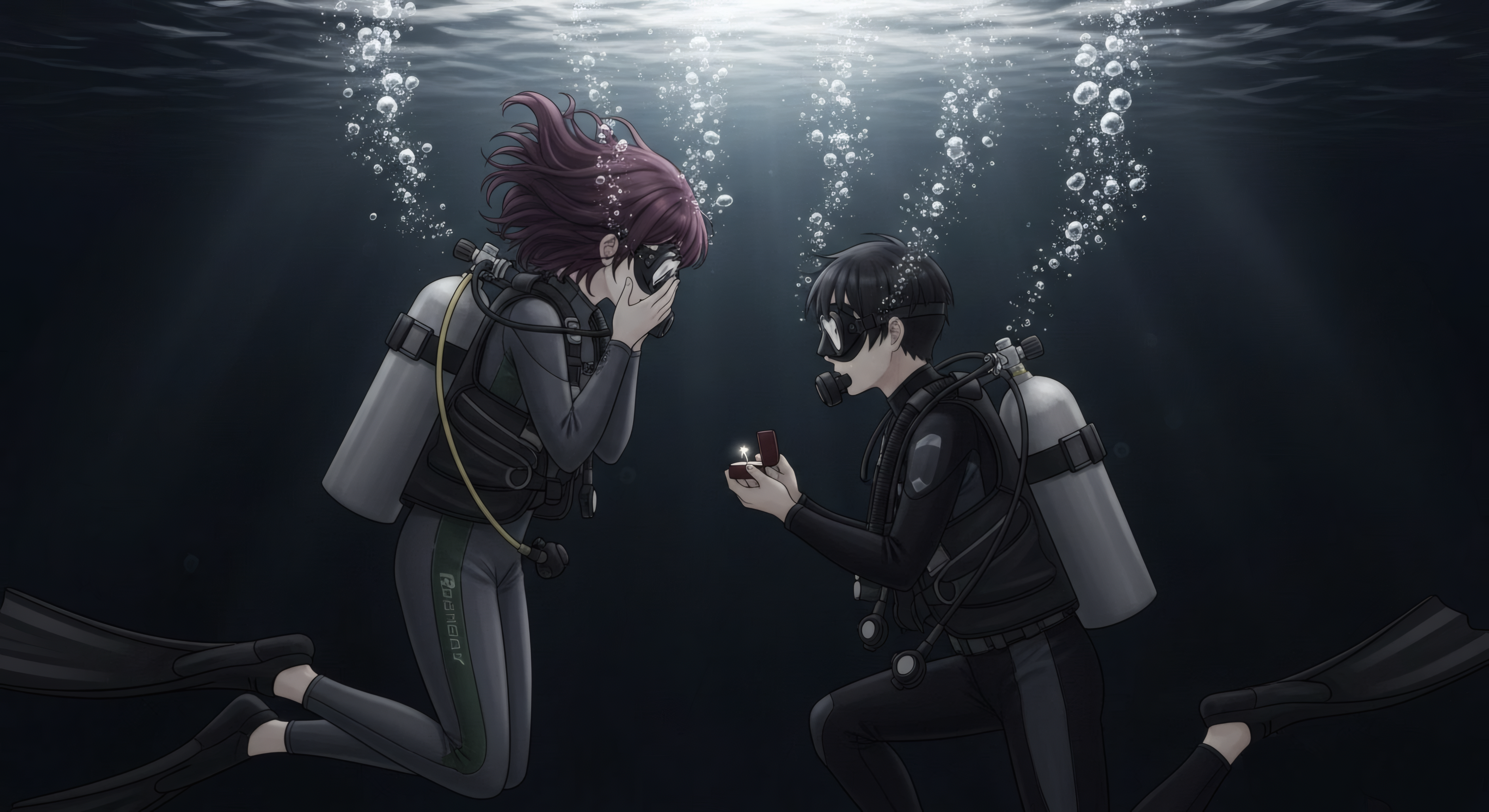 店の企画でお客さんに何度かサプライズ水中プロポーズ大作戦はやってきたけど、ま、まさが自分がされるとは……