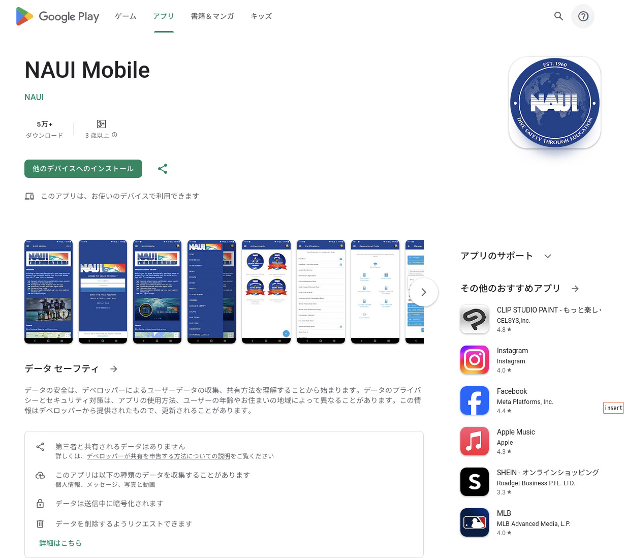Google Play Store で "NAUI" で検索すると "NAUI Mobile" というアプリがヒットします。