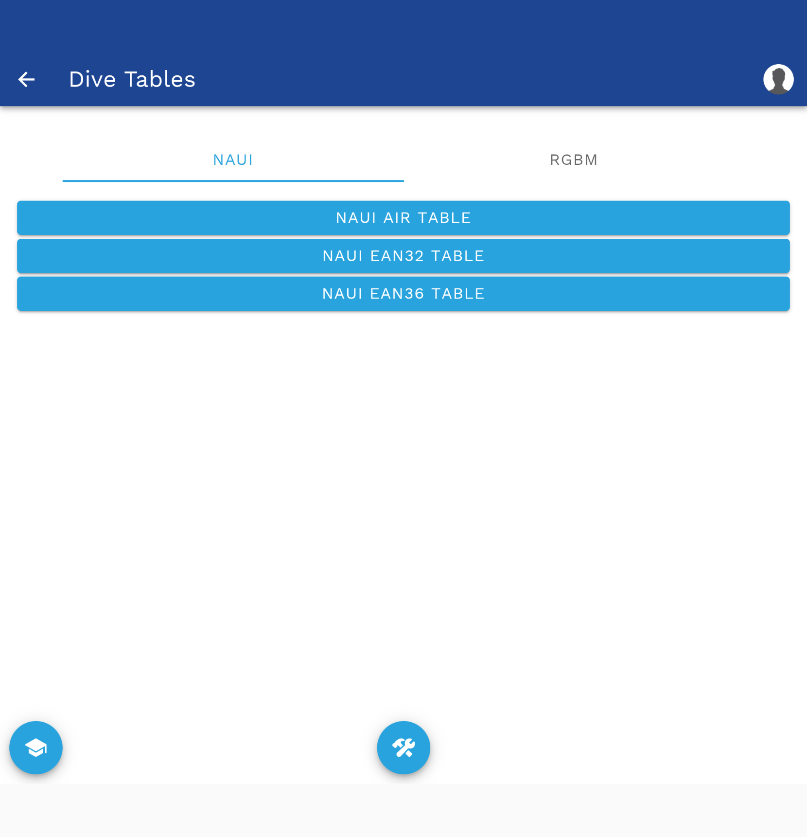 とりあえず日本人のぼくたちは通常の NAUI AIR TABLE を使うことになるので、NAUI AIR TABLE をタップします。