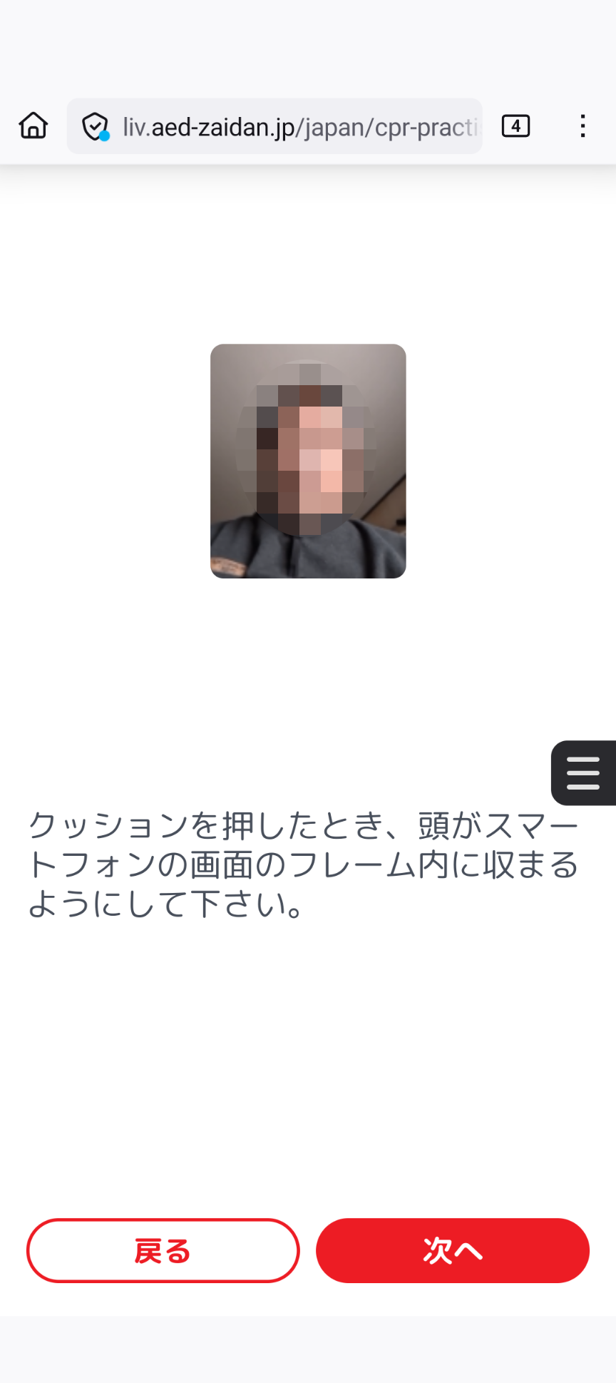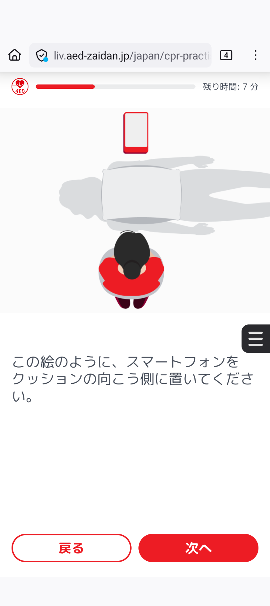 コンテンツを観たり読んだり、クイズに答えていくと、やがて実際の CPR の胸骨圧迫の練習のページがでてきます。