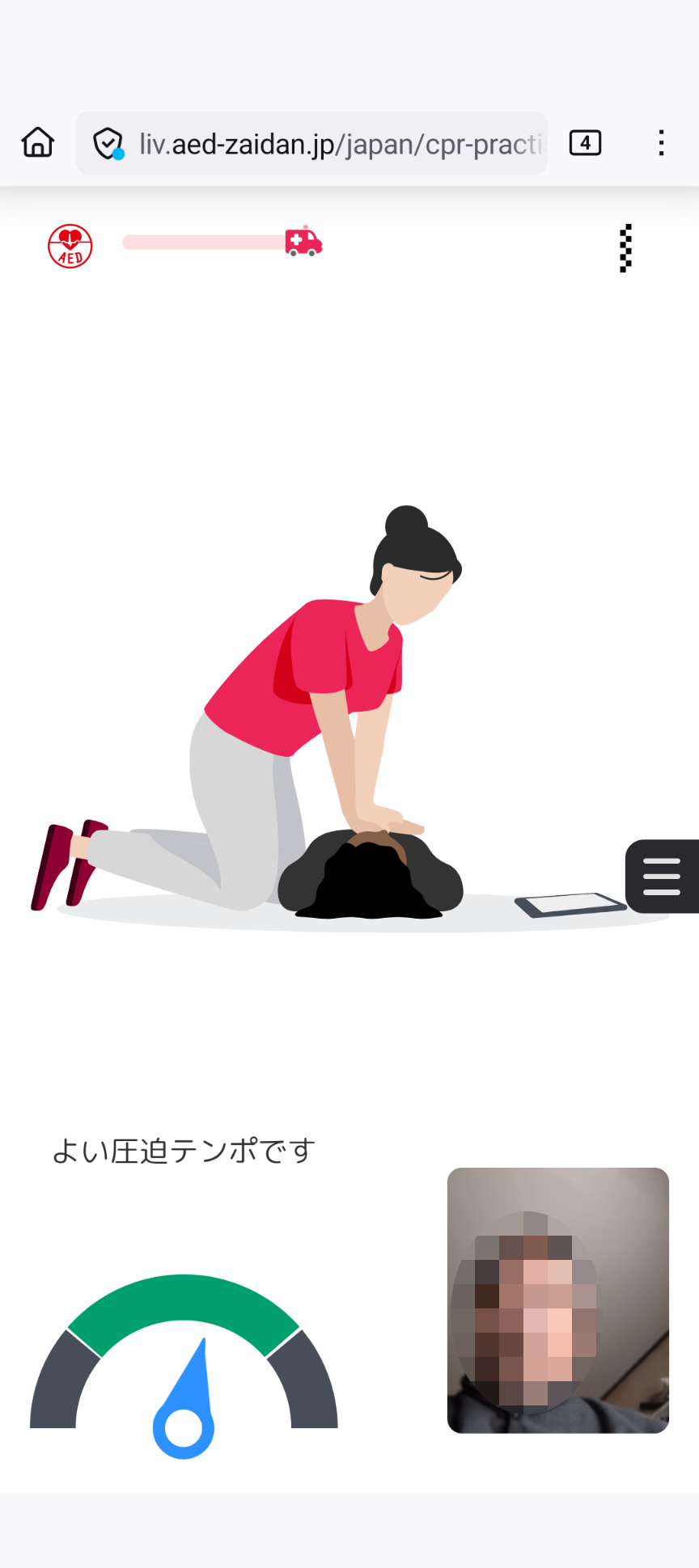 胸骨圧迫のペースはアプリから流れるメトロノームの音に合わせるだけでいいので、とても簡単です。