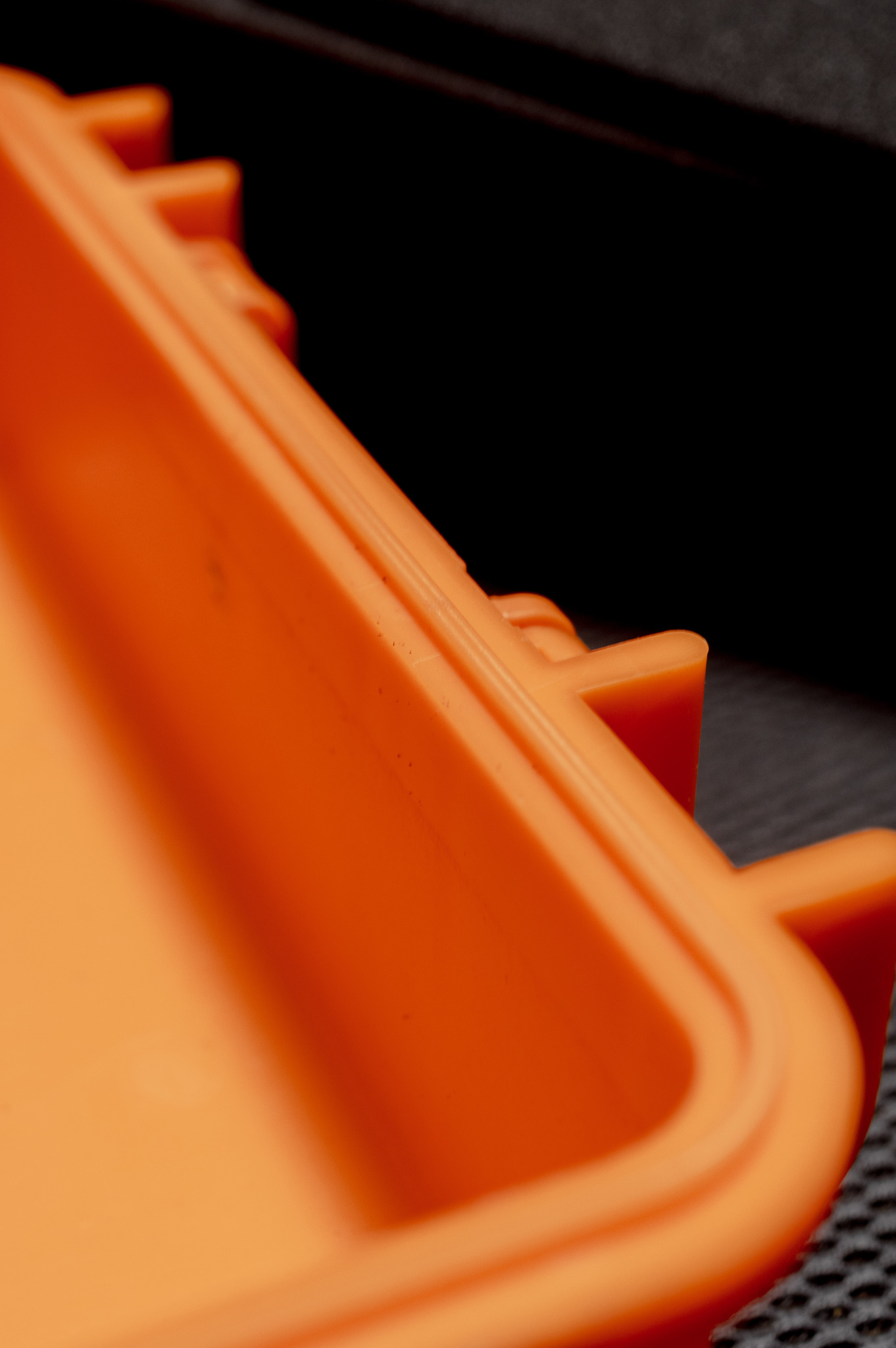 本体が蓋と接する縁です。凸状に成形されていますが、ここが蓋側のパッキンに圧着されて防水力を発揮します。