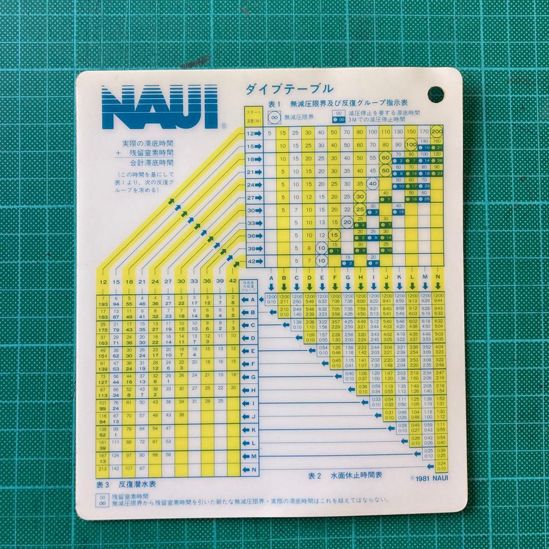 メルカリで譲ってもらった古い NAUI ダイブテーブルが届いた。1981 年版なので、おそらくぼくが 1987 年に NAUI Open Water I を取ったときと同じもののはずだ。今このダイブテーブルが使えるかと言うと使えない。あまりに数字が古すぎて実際に使うのは危ない。だから使えない。あくまで思い出コレクションとして譲っていただいた。