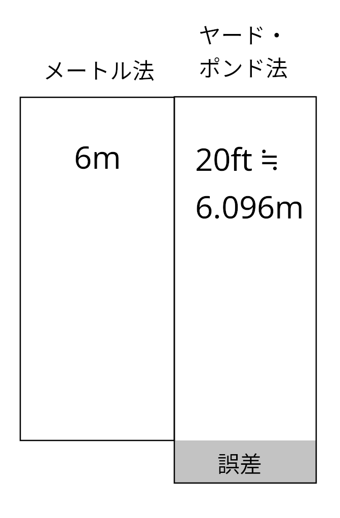 20ft は 6.096m ですからヤード・ポンド法ではメートル法の 6m を 0.096m 越えています。
