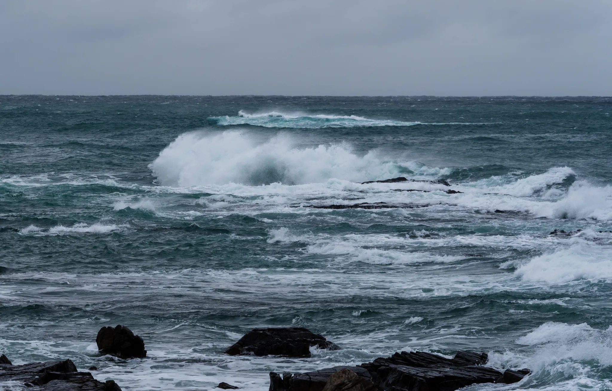 今日は低気圧の通過に伴なう寒冷前線の通過のために海は大荒れでした。